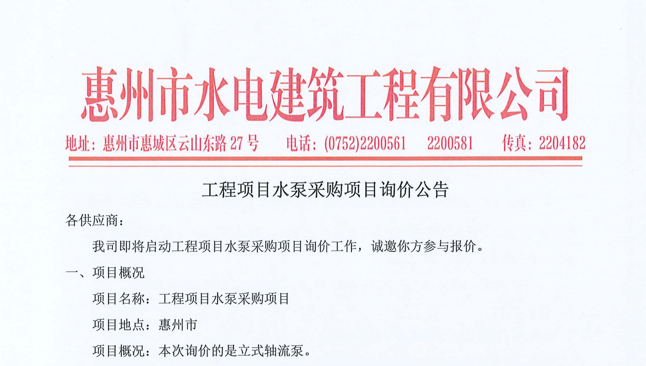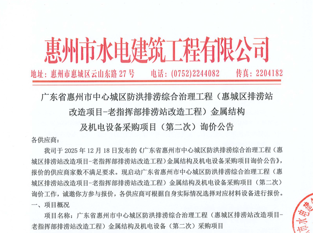 廣東省惠州市中心城區地下管網系統提升工程第二批次塑料管件(補充)采購項目詢價公告……